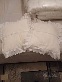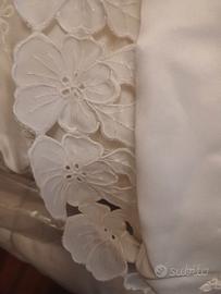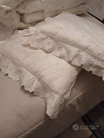 un piumone bellissimo italiano bianco con tutti fiori che scendono dai lati in rintaglio .....arreda una camera ....coppia di cuscinetti da usare su poltrone centro letto .... chi se ne intende puo immaginare quanto e costato ma lo vendo a solo 140...ITALIANO
