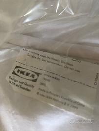 Piumone ikea, bianco, formato matrimoniale completo di copripiumone a sacco, in cotone, colore beige e righe bianche.