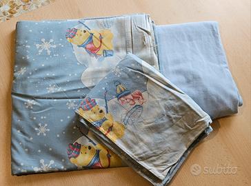 2 piumoni per letti singoli. In omaggio due set abbinati composti da un lenzuolo, un coprimaterasso e una federa per cuscino. Ottimo per una cameretta per bambini.
