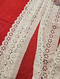 È un pizzo in cotone o misto cotone, caratterizzato da ricami a traforo che creano motivi floreali e geometrici.