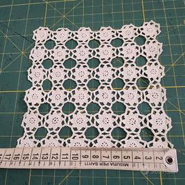 pizzo realizzato a mano all'uncinetto in cotone cm2.50, includo un piccolo centrino con piccolissime margherite