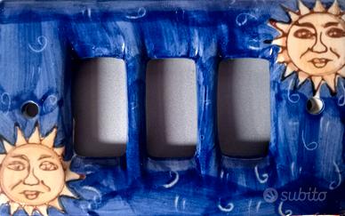Placca Bticino Living International in ceramica decorata a mano disegno Sole, 3 posti.