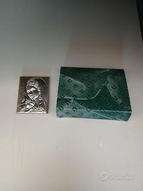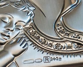 Placca sacra Madonna con Bambino in lamina d’argento 800 su legno – 7x9 cm