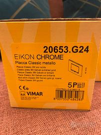 Il prodotto è una placca Vimar Eikon Chrome Classic metallo 3 moduli