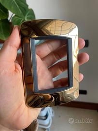 Disponibilità di 38 placche per interruttori BTicino serie Living in metallo oro a 3 posti.