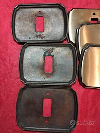 serie n. 6 placche vintage in ottone per prese/interruttori, dimensioni mm 108x80, fori fissaggio in verticale distanza mm 48, in buono stato