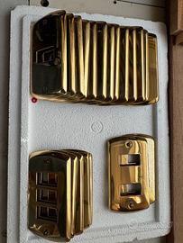 PLACCHE INTERRUTTORI OTTONE LISCIO: * 15 da 1 frutto * 2 da 2 frutti * 5 da tre frutti. Vendo a €. 6,50 cadauna. PLACCHE INTERRUTTORI BRUNITE: Oltre 40 placche miste a uno, due e tre fori. Vendo a €. 3,00 cadauna.