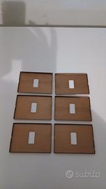 Sei placchette a un posto, usate, originali Bticino, serie Magic (503/1/BR), in alluminio color bronzo, per scatole 503. Placchette tutto metallo. Nessuna imperfezione. Misure
