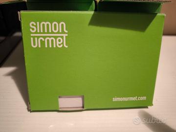 Vendo placche 3 frutti Simon Urmet in metallo, colore bianco perla con bordo argento, disponibili 6 nuove imbustate.