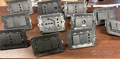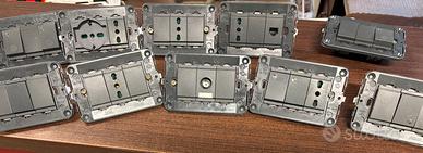 Vendo n 60 Placchette VIMAR serie IDEA classica a 3 moduli, in metallo pressofuso, color Nichel spazzolato, comprensive di relativi frutti elettrici come nella foto (prese, interruttori, etc etc). Vendo a blocchi di 10 pezzi a 70 euro (placchette + frutti elettrici se voluto).