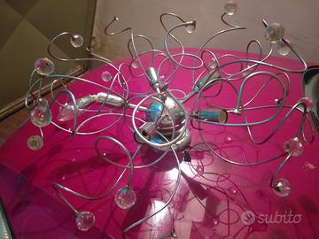 plaffone 5 luci acciaio e cristallo