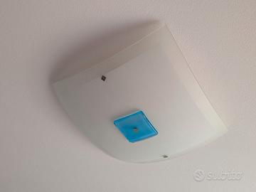 Vendo plaffoniera quadrata in vetro satinato curvo, attacco con doppia lampadina, funzionante. Ha una piccola crepa, come si vede in foto, ma molto poco visibile. Acquistato nel noto negozio Ongarato lampadari di Padova. Adatta a soggiorno, camera da letto, ingresso, studio o corridoio.