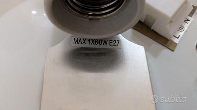 Vendo una plafoniera di diametro 30 cm con un posto per una lampadina passo grande E27 fino a 60W con paralume in vetro satinato. Il supporto ha un diametro di 24 cm con una morsettiera integrata per il collegamento.