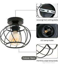 Plafoniera a gabbia in metallo nero con attacco E27 e montaggio semi-incastonato. Adatto per soggiorno, camera da letto, cucina, corridoio e veranda.