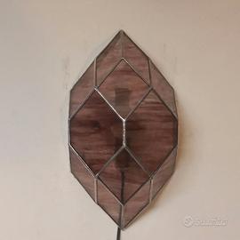 Applique a parete, legata a stagno in stile Tiffany, in vetro striato porpora. Finitura a stagno naturale.
