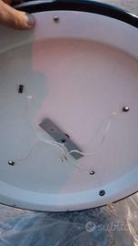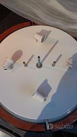 plafoniera AF CINQUANTA vintage con telaio in metallo ed inserti effetto legno, copertura in vetro semitraslucida, diametro 58 cm, 4 lampadine attacco E27 fa coppia con un'altra plafoniera più piccola anch'essa in vendita
