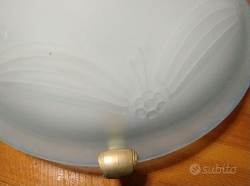 Plafoniera di vetro effetto alabastro, circa anni 90/2000. Condizioni perfette, fermi color ottone. Greche floleali sul vetro.