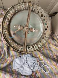 Bellissima plafoniera anni 20, base in ottone lavorato, vetro soffiato satinato, diametro 40 cm Non spedisco