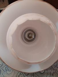 Plafoniera antica. Lampada da attacco a soffitto. Doppio vetro opalino color rosa antico. Anni 30 originale. Vetro e attacco in metallo originali. Bordi inferiori ondulati. Foro adatto per attacco portalampada E27. Perfette condizioni. Euro 170,00