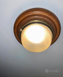 Stile unico e atmosfera vintage si fondono in questa splendida plafoniera applique. Realizzata con cura artigianale, il legno e il vetro si combinano per creare un design affascinante.