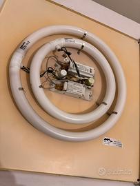 Lampada vintage da soffitto e/o muro in metallo e plexiglas bianco realizzata per Martinelli Luce. Misura 60x60. I due tubi fluorescenti sono inclusi. Solo ritiro, zona Legnaia-Soffiano.