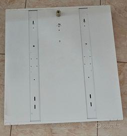Vendo plafoniere (12 ma vendo anche singolarmente) a neon complete di griglia parabolica. Dimensioni singola plafoniera: 59×59cm (spessore circa 7cm). Struttura metallica bianca, con 4 tubi fluorescenti T8 da 18W ciascuna (inclusi); le lampade provengono da ufficio dismesso, funzionanti al momento dello smontaggio.
