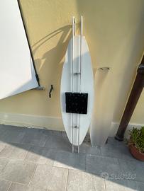 Metallo colore bianco e plexiglas.