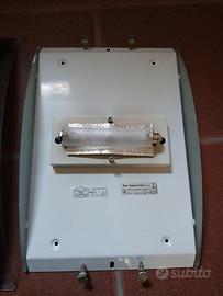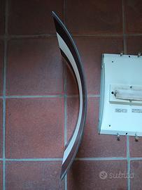 Plafoniera in vetro bianca e nera alogena anni 2005. Presenta una piccola crepa come si vede in foto(prima e seconda foto) in basso a destra vicino a un foro di serraggio. Chi fosse interessato consegna solo in zona Sala Bolognese