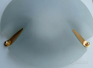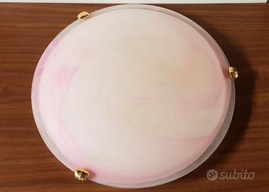 Bellissima plafoniera da soffitto in vetro satinato 50 cm, con 2 porta lampade, con ganci in ottone e struttura in ferro. In Regalo plafoniera da soffitto in vetro satinato color rosa diametro 40cm, una porta lampada (ultima foto). Solo consegna a mano per fragilità dei prodotti, se siete più lontani ci possiamo incontrare a metà strada.