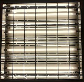 Vendesi, per mancato utilizzo, alcune plafoniere marca Disano, mod. Comfort 773 in metallo laccato bianco, con parabola interna riflettente e complete di 4 tubi al neon. Misure: cm.60 x 60 circa, in ottimo stato. Il costo è comprensivo dei 3 pezzi.