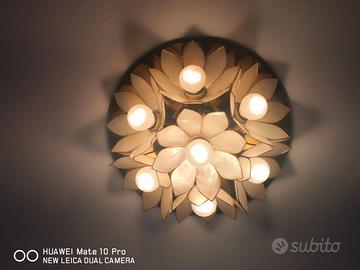 Vendo plafoniera a fiore di loto e applique da parete a tema realizzate in ottone e madreperla (design vintage anni '70).