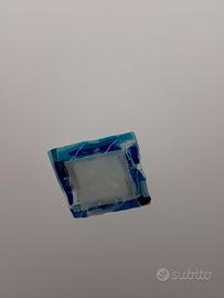 Decorazione astratta sui toni del blu con inclusioni e bolle tipiche della lavorazione artigianale.