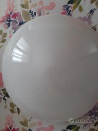 plafoniera in vetro bianca a righine basamento diametro cm 25,50 vetro più basamento diametro cm 39,00