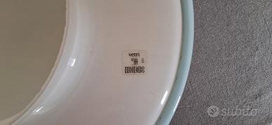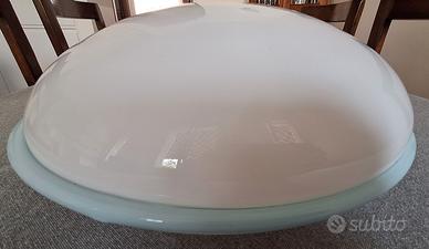 Plafoniera in vetro di Murano, diametro cm 40, bianca opalescente con bordo azzurro, adatta per locale bagno. Disponibile per consegna o ritiro diretto in zona Legnano, Monza, Varese, Milano