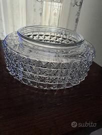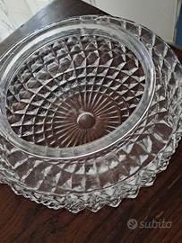In vetro sagomato molto resistente. Diametro di 24 cm. Altezza di 7.5 cm. Diametro interno del foro 7.5 cm. Anche consegna a mano a Novi Ligure.