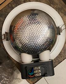 PLAFONIERA con 2 lampade Alogene da 15w Diametro esterno 23 cm-Interno per foro 20 cm-profondità 9 cm