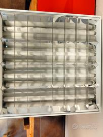 Plafoniera da controsoffitto a quadrotti. Misura 60x60cm. 4 tubi neon. Probabilmente modificabile per tubi led. Usato ma in ottimo stato. Disponibilità più di 50.