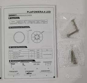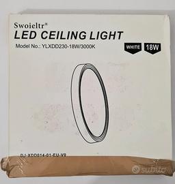 Plafoniera LED bianca, nuova e mai utilizzata. 18 Watt Classe energetica E Sono inclusi nella confezione: manuale di istruzioni, n.4 viti, n.4 tasselli piccoli. Dimensioni prodotto: diametro di 223 mm e spessore di 21,5 mm