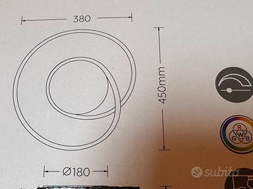 Plafoniera Led Alluminio Satinato Effetto Cristallo con Telecomando Luce bianca dimmerabile + RGB + luce notturna Vendo moderna plafoniera LED con cambiacolori RGBW e telecomando incluso, perfetta per salotto, camera o ambienti moderni. Possibilità di scegliere tra ampia gamma di colori, funzione luce notturna e luminosità regolabile. • Diametro: 45 cm • Altezza: 18 cm • Design elegante con copertura in cristallo effetto brillante • Finitura in cromo lucido • Tecnologia LED a risparmio energetico (fino all’80% rispetto alle lampade tradizionali) Acquistata per rinnovo bar, montata ma non adatta al locale. Smontata e rimessa nella scatola. Disponibili: 4 plafoniere Prezzo a unità. Sconto per acquisto in blocco.