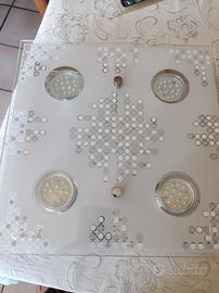 Plafoniera con 4 luci a led perfettamente funzionante e senza difetti misura 29 x 29. Completa delle 4 lampadine + 1 di riserva.