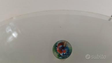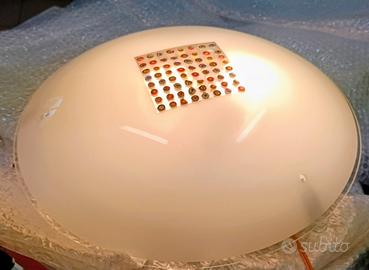 Plafoniera in vetro di Murano con inserti di murrine. 2 portalampade interni E 27 dove poter mettere qualsiasi wattaggio di lampadine a led . Diametro vetro 40 cm.