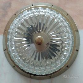 Plafoniera per bagno in metallo e cristallo, diametro 35 cm circa.