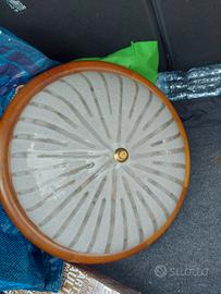 Plafoniera in legno massello e vetro bella e consistente, vendesi in Borgorose provincia di Rieti
