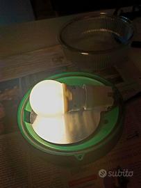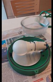 Plafoniera rotonda di colore verde brillante in plastica e vetro da esterno e interno. Diametro cm. 18, altezza cm. 11. Fornita con lampadina attacco E 27 11 W