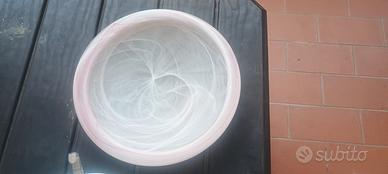 Plafoniera rotonda per bagno o camerina, colore vetro bianco e rosa antico sfumati