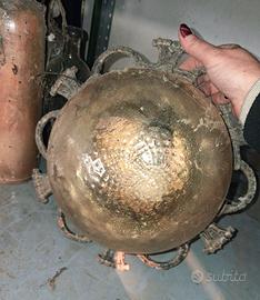 Plafoniera vintage in ferro battuto con globo in vetro ambrato disponibili 3 unità