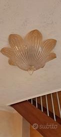 N.2 plafoniere a soffitto in vetro graniglia e n.1 applique a muro forma fiore