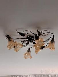 n.2 diverse Plafoniere da soffitto in ferro battuto con eleganti lavorazioni a foglie e diffusori in vetro.