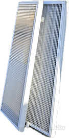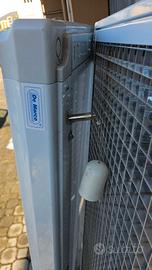 Struttura solida in metallo bianco, griglia protettiva in metallo.