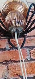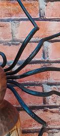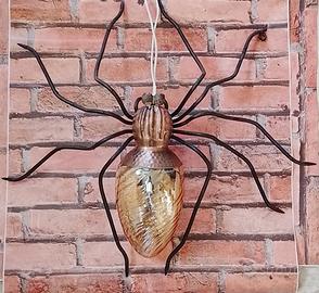 applique/plafoniera a forma di ragno, anni 50/60 molto usata nell’Italia rurale appesa fuori di casa perché portava e fortuna si diceva : ragno porta guadagno…porta fortuna con 9 zampe sempre dispari, Erano oggetti che facevano non le grandi industrie ma sicuramente artigiani locali, molto usati nelle regioni del Veneto e Lombardia guarda a caso le regioni più ricche d’Italia…..la sfera in vetro è di ottima fattura, piccoli segni del tempo vedi bene le foto ti arriva quella in foto vista e piaciuta….altezza 12 cm. Larghezza 47 cm. Lunghezza 44 cm. Peso 1 kg. Lampadine a passo piccolo esclusa, spedizione a carico vostro ritiro a mano a Parabiago